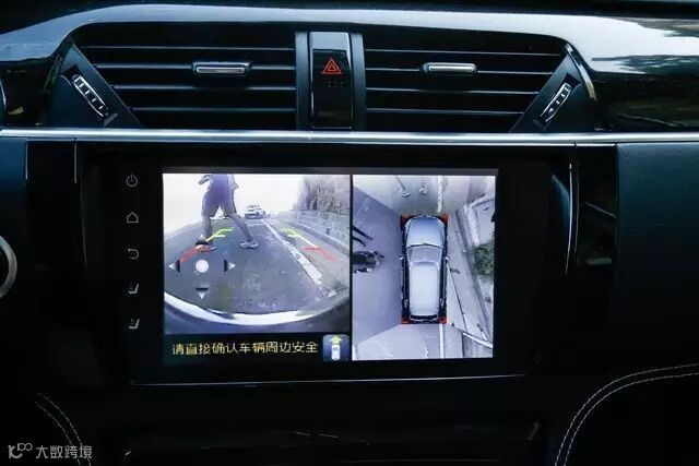360°全车影像系统,带倒车轨迹预测功能,仅在旗舰型上有配备,显示效果和反应速率都不错。