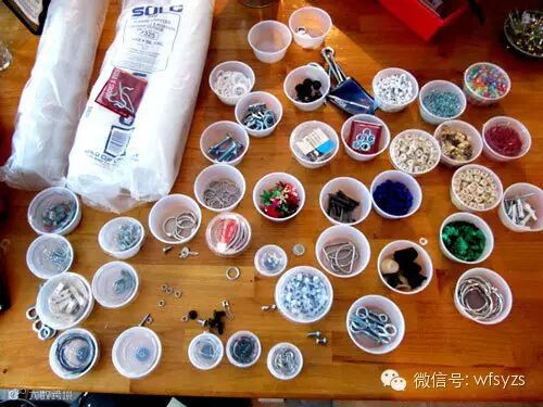 这些小塑料盒子是餐馆用来打包食品的,把它们清洗干净后用它们来放东西。