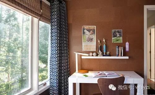 如果阳台空间充裕的话你也可以将阳台改造独立有味道的书房,比如在阳台墙面上采用驼色墙纸,靠近室内随意摆放一张白色办公桌,墙面的挡板你也可以作书架用也可以做收纳用。不同颜色长短窗帘的使用,让阳台更加分明。书桌前的一面墙壁采用温润的蓝色窗帘,狭长的一面墙壁则是素雅格子,纱窗的设计更是让小小的空间充满浪漫情调。