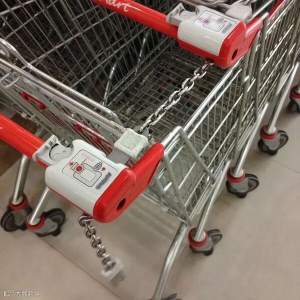 商家率先引进了这种自助服务式购物车。免费让顾客借用购物车的同时,节省了因整理车辆花费的人工开支。真是一举多得的人性化服务。