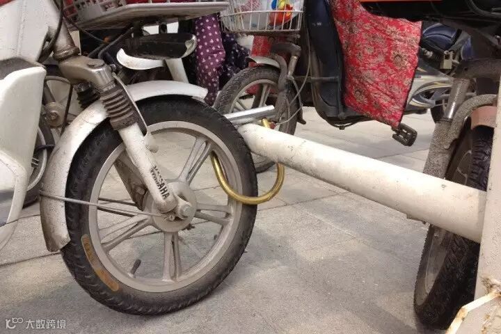 这种车只是在把手一端,装置了一个带有简短铁链的方形盒子——一个用硬币开启的锁盒。除此以外,和普通的没有区别。