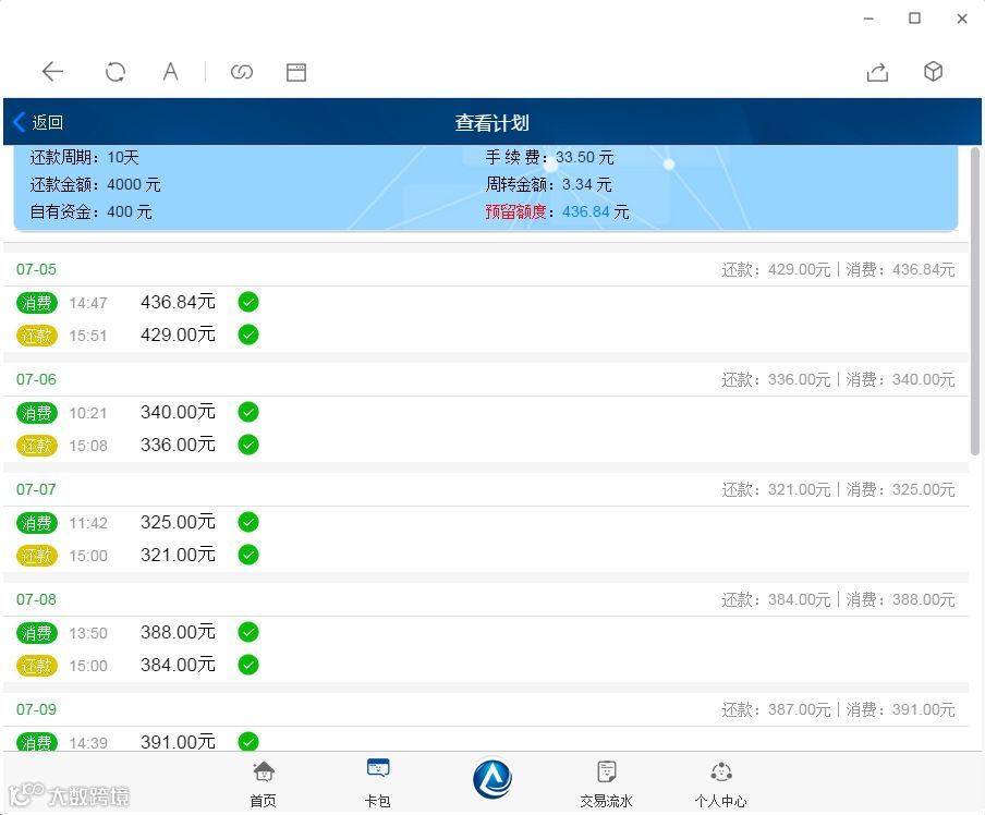 比如上述灰名单中的高危行为——习惯性逾期,这个习惯是因为很多卡友工作忙,马大哈导致的。现在借助万千智能管家APP,它可以帮助卡友们自动还款。启动万千智能管家APP后进入卡包界面,把你手上的信用卡全部添加到卡包里,然后为每张信用卡制定智能还款计划。