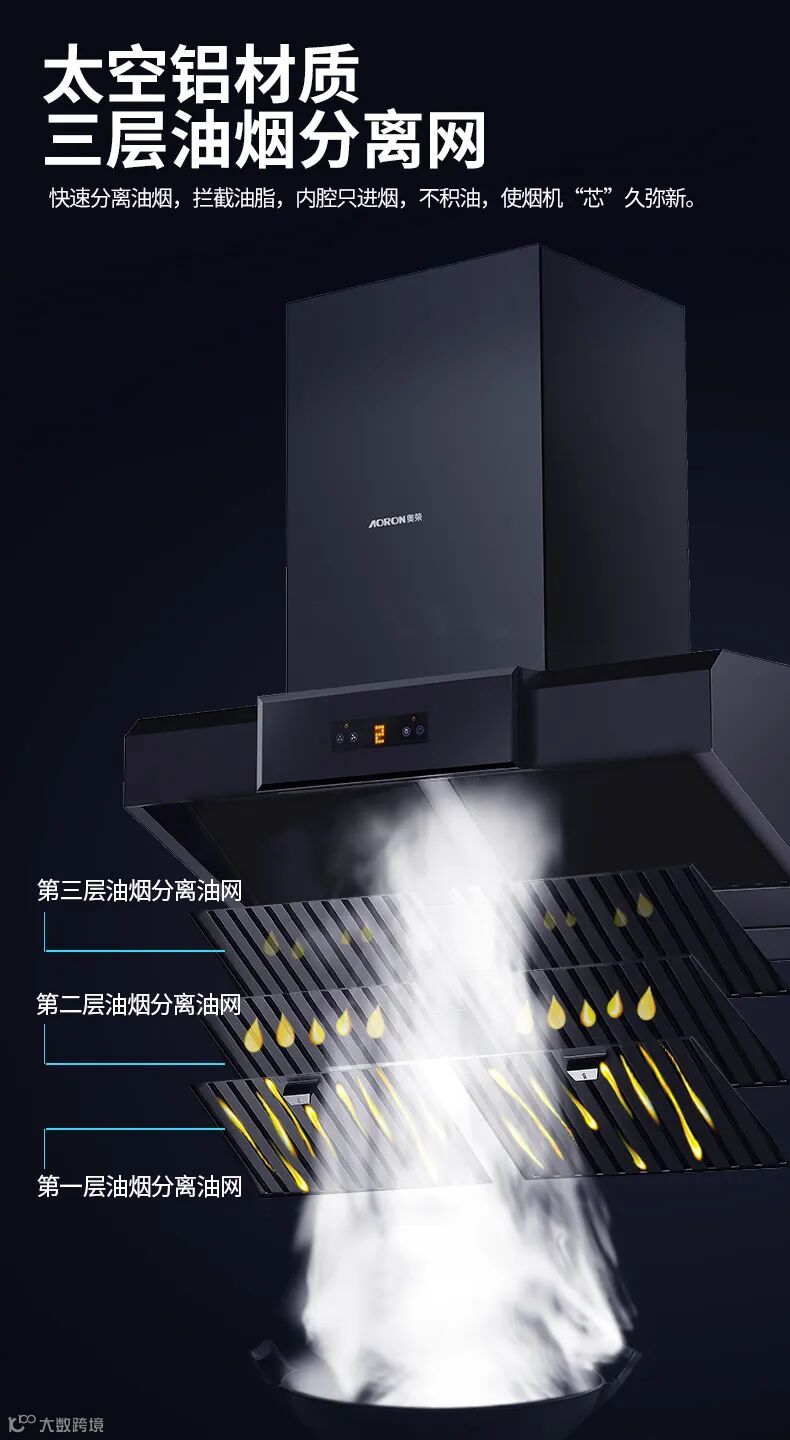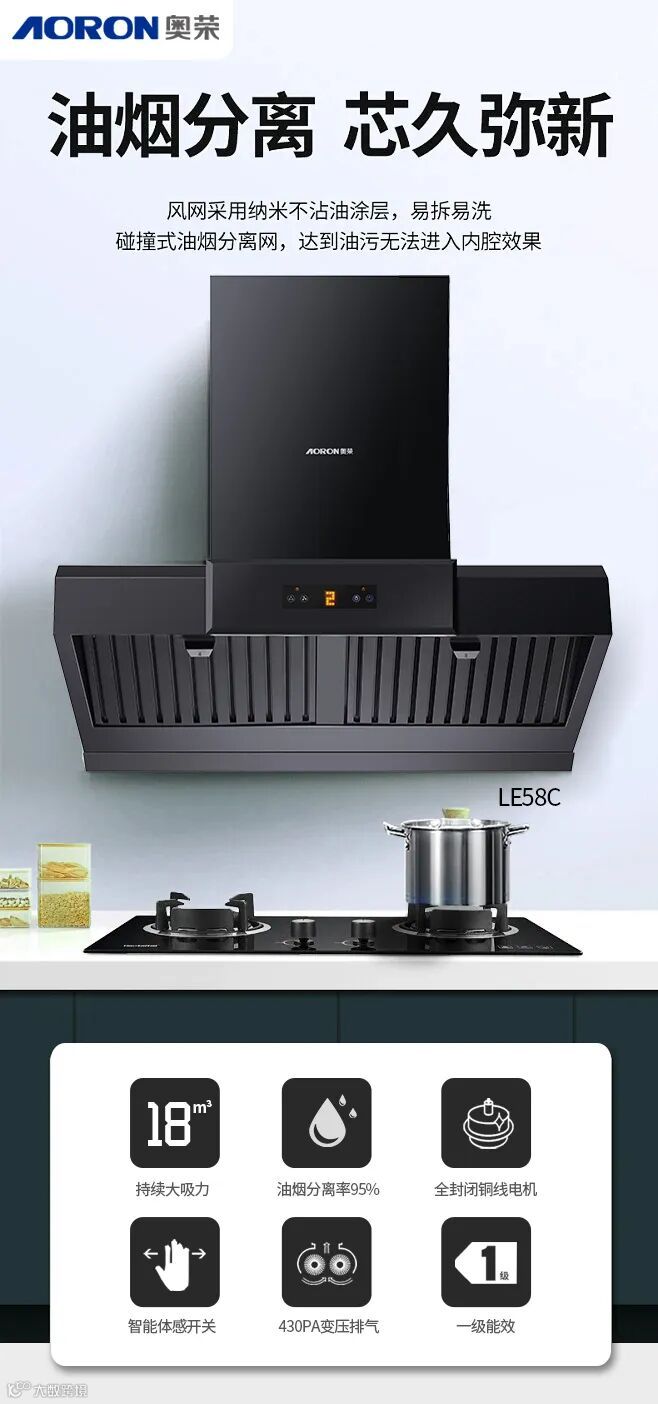 奥荣全新上市的吸油烟机LE58C油烟分离,就能一机搞定厨房难题。三层太空铝油烟分离网,高效油烟分离,内腔无油免清洗,18m³/min劲吸油烟,430Pa智能巡航排烟,肆意爆炒,挥手开关机,让厨房更温馨!
