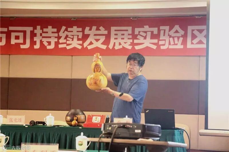 随后,火绘葫芦大师季顺为参会成员展示其得意作品,在葫芦上作画的创作形式为这种民俗技艺增添了许多趣味感。随着季顺大师的讲解,为众人普及了火绘葫芦的发展历程以及对民俗旅游业的促进作用,通过这项工艺在葫芦上描绘出旅游区的特色风景,便能够成为颇具艺术特色的旅游纪念品。