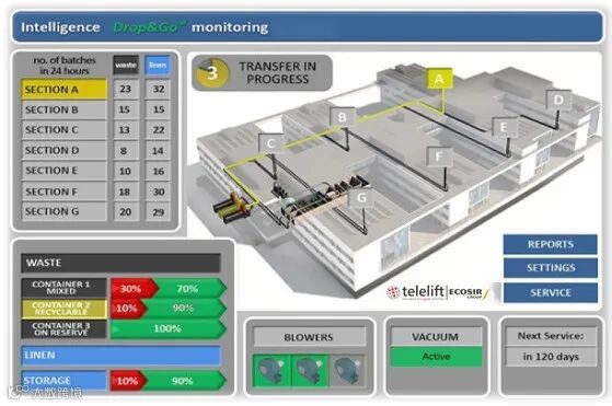 系统本身可通过人脸识别、RFID 识别等多种方式解锁,安全、方便,快速的收集酒店内的生活垃圾及污被服,垃圾经过管道快速集中后集中处理,且全天 24 小时不间断。