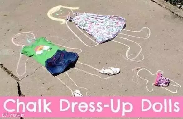 3.粉笔和衣服,孩子自己装扮娃娃;