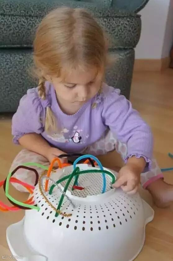 9. 在粗麻布上用塑料针秀出有趣的图案;
