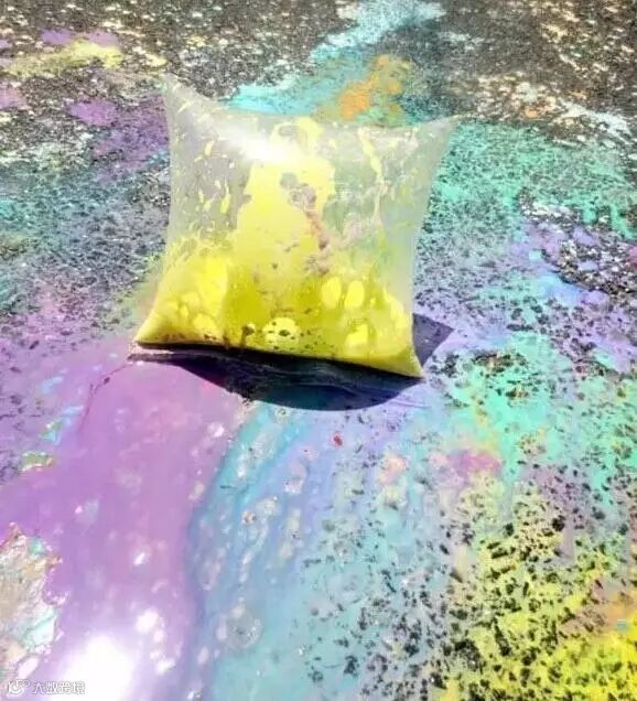 4.爆炸的涂料袋,让孩子更有艺术色彩;