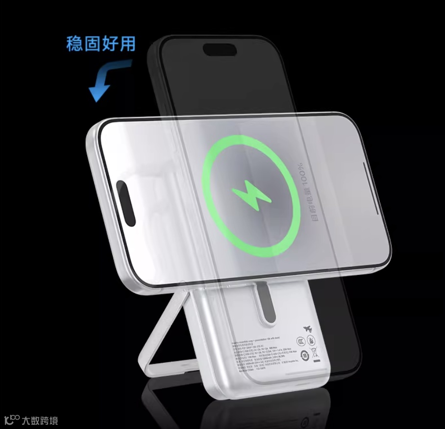 mophie支架式无线充电宝,搭载高密度环形磁阵列,还通过了Qi 2认证,完美适配MagSafe生态,只要轻轻靠近iPhone,“啪”的一声就能精准对齐吸附,牢牢贴合不脱落,狂甩都不会掉。