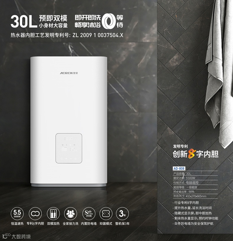 奥荣AD30-808速热双模电热水器,一级能效,90%热水输出率高于国家一级能效标准70%,24h固有能耗系数低至0.6,节能省电,畅浴无忧;特有谷峰夜电模式,夜电模式下的电热水器会在晚上指定时间加热,然后进入保温状态,节省大量电能,环保节能,展现先进环保的品质生活态度。