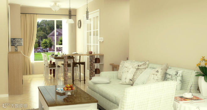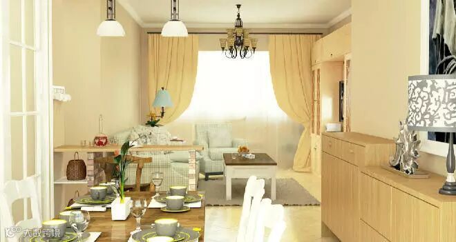 黄色的墙,黄色的帘,白色的沙发是我们的家……