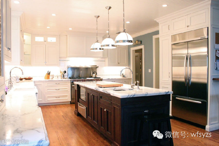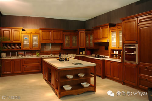 厨房的岛形备餐台一般独立位于厨房中间,这样备餐台面比较开阔,主妇们可以用来放置烹饪材料,厨房的功能也能得到强化。