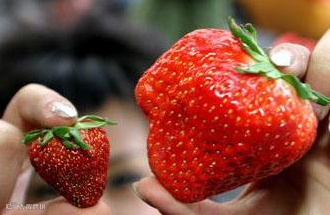 有些果农为牟取暴利,在种植过程中多次乱用膨大剂。膨大剂的成分主要是刺激细胞分裂,通过促进果实中的细胞分裂和体积增大达到增产目的,使得有些草莓个头很大、颜色佳,甚至有些还长得奇形怪状的。膨大剂属农药范畴,超量使用影响果品质量,消费者一旦摄入过量膨大剂残留量大的草莓,会对健康造成很大的损伤。尤其是肾病患者,更应当避免过多食用。