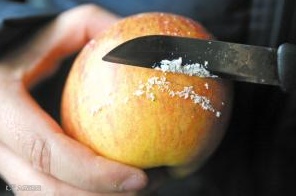 如何鉴别:专家称,果皮上的蜡主要有三种情况:苹果自带的果蜡;果农上的食用蜡;不法小贩上的工业蜡。前两者都是可以食用的,实在要去除这层食用蜡也很简单,用热水或盐水冲洗即可。挑选打蜡水果时,可用手或餐巾纸擦拭水果表面,如能擦下一层淡淡的红色,就很有可能是工业蜡。质检部门的工作人员则称,食用蜡和工业蜡不太容易用肉眼分辨,水果食用前应用盐水清洗,或者干脆去皮之后再食用。