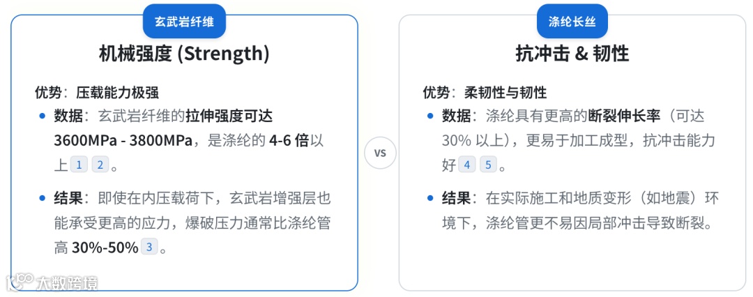 基于2025-2026年的最新行业数据与技术报告,我们对聚乙烯柔性复合管中两种主流的增强材料——玄武岩纤维丝 (BFRP) 与 涤纶工业长丝 进行了全维度对比。