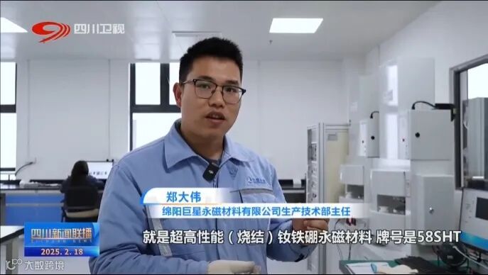 绵阳巨星永磁材料有限公司常务副总经理 黄浩:在年初的时候,就将我们整个销售的计划直接翻了一番,提升到15个亿,这就是基于我们对于自身的一个自信,整个的产业链逐步地展开,从而服务整个绵阳市的磁性材料产业健康地发展。