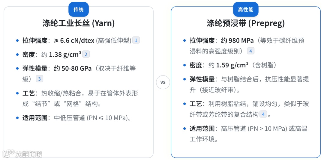 在聚乙烯柔性复合管(RTP)的生产工艺中,增强层是决定管道承压能力、抗开裂性和耐久性的核心。传统上,制造商主要使用涤纶工业长丝(纱线);而随着技术进步,涤纶预浸带(Prepreg)正在逐步成为高性能管材的“新宠”。以下是两者的详细对比与分析: