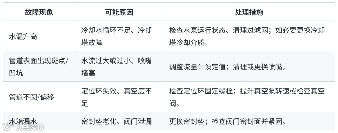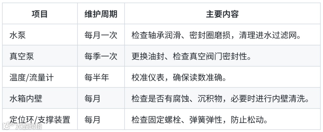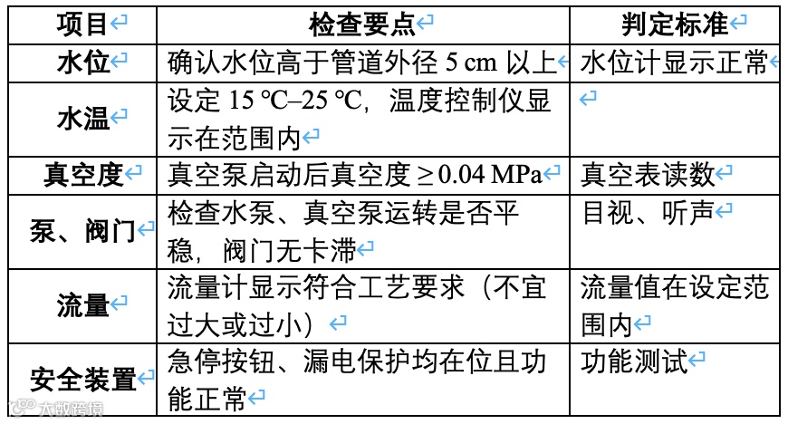 异常报警:若水温超过 30 ℃、真空度低于 0.03 MPa、流量异常,立即停机并排查原因。