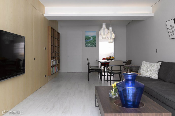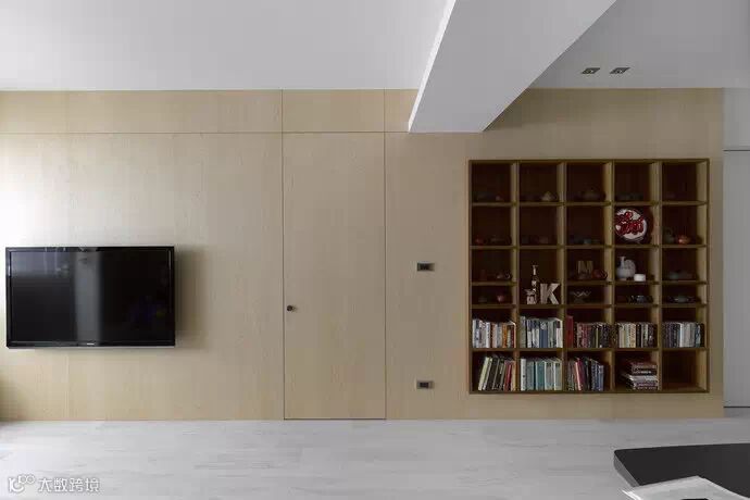 电视主墙-横向开展的大尺度主墙设定,藉由材质延续创造开阔视野格局。