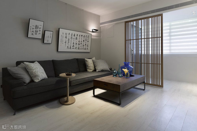 客厅背墙-选用雾乡色作为衬底,深刻对比出书法字画的中式人文禅境。