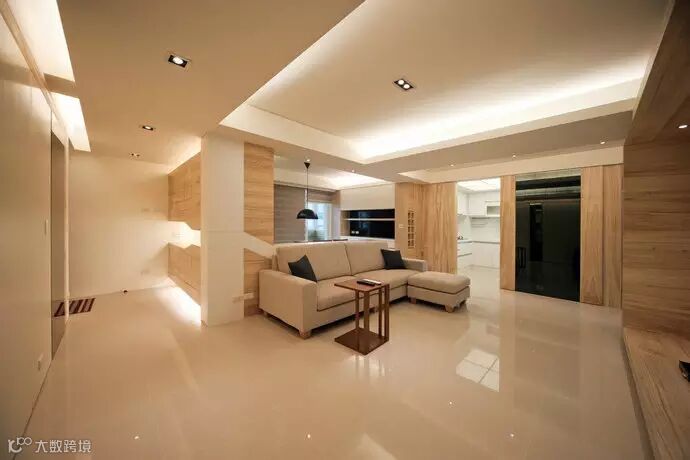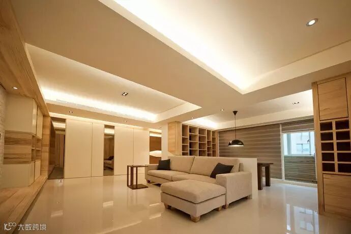 天花光盒-结构梁柱也藉由灯盒原理拉升屋高,将庞杂线条简化至最低。