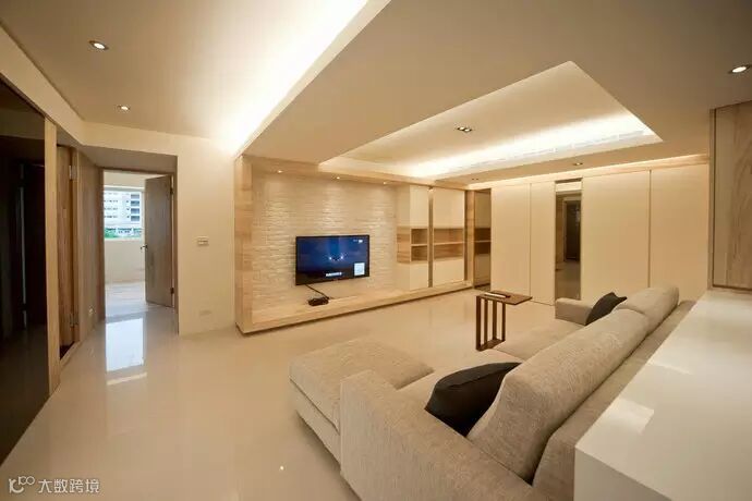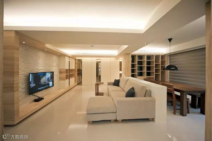 电视墙-结合电视墙规划的大面柜体,将生活所需的零碎线条完整收纳。