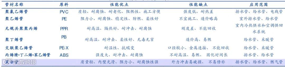 聚丙烯(PP)管:具有良好的耐热性、耐腐蚀性和加工性能,适用于冷热水供应、工业和化学处理管道等领域。