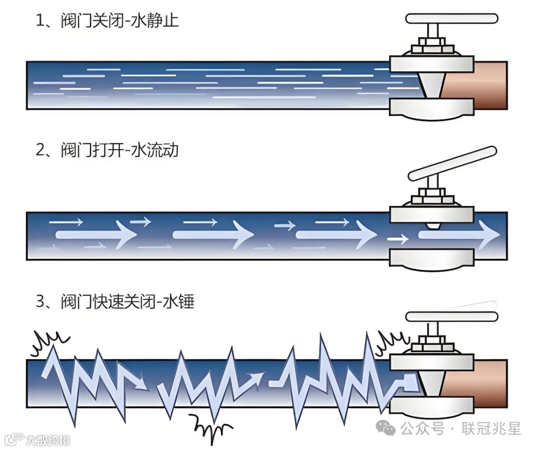 水锤效应是指在水管内部,当阀门突然关闭或水泵停止时,水流对阀门及管壁产生的压力冲击现象。这种现象会导致管道系统产生强烈振动或噪声,并可能对管道造成破坏。