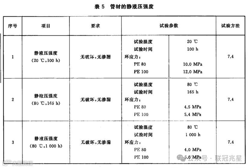 PE100的MRS达到10Mpa,PE80的MRS达到8Mpa。聚乙烯在20℃长期静液压强度下,应用到50年时,材料被破坏的环向应力数值,,在10.0-11.2MPa的为PE100,在8.0-9.99MPa的为PE80。