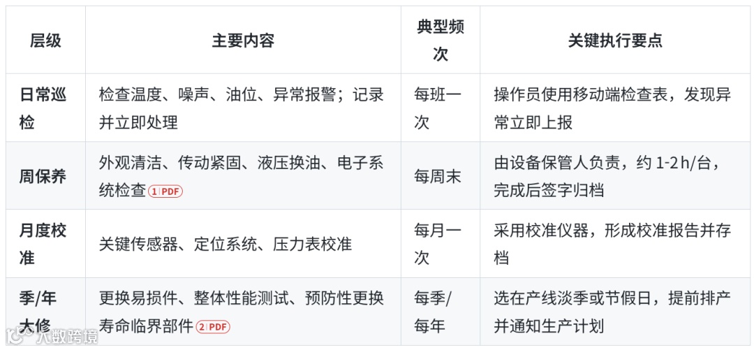 1. 建立分层维护计划(日‑周‑月‑季)·