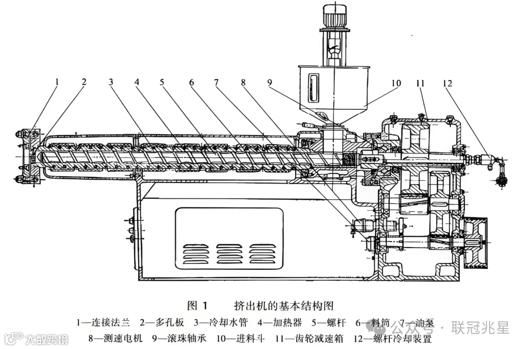 单螺杆挤出机主要由挤压系统、传动系统和加热冷却系统等3个部分组成,其基本结构如图1所示。