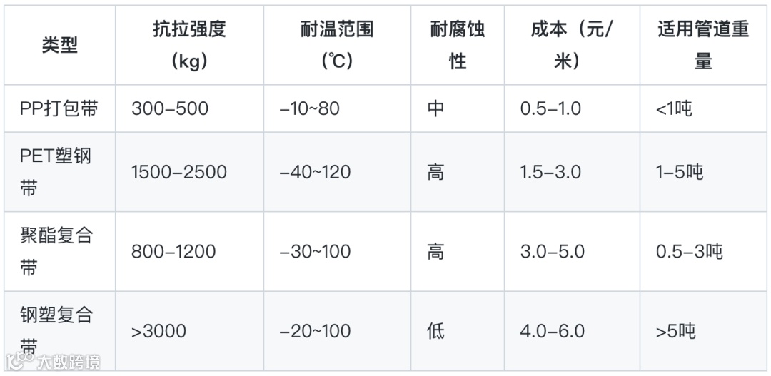轻型管道(<1吨):PP打包带(低成本,易操作);