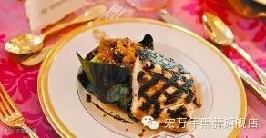 五道菜式东西融合体现“中美关系”主题。“施展中西合璧的烹调技术,奉献了一桌美味的午宴”。就是当时希拉里·克林顿在欢迎致辞时,赞扬筹备午宴的蔡明昊的话语。今天我们想给大家介绍的是第一道主菜“黑蒜酱腌阿拉斯加鲳鱼”。据蔡明昊的介绍因为美国阿拉斯加的水冷出肥鱼,鲳鱼味道最美,他个人觉得这是最好吃的鱼。酱汁是先用美国特有的一种黑蒜头(味道有点像中国的黑豆豉),还有酱油将鲳鱼腌24个小时入味,再现场煎。重点出来了是“黑蒜头”,没错当时黑蒜已经在国际占有不一样的地位了。