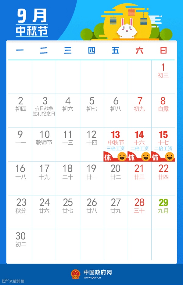 日前,中国政府网正式发布了2019年部分节假日安排的通知,涉及元旦、春节、清明节、劳动节、端午节、中秋节、国庆节等。