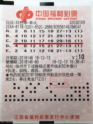 12月13日,中国福利彩票双色球进行了2018年的第146期开奖,全国中出一等奖13注,单注奖金为639万多元。来自江苏徐州的彩民自选了5注号码,当中有1注与开奖号码完全一致成功揽获一等奖,幸运站点是徐州市下淀路杨庄菜市场东50米巷口32030109福彩投注站,出票时间为12月13日16时38分41秒。