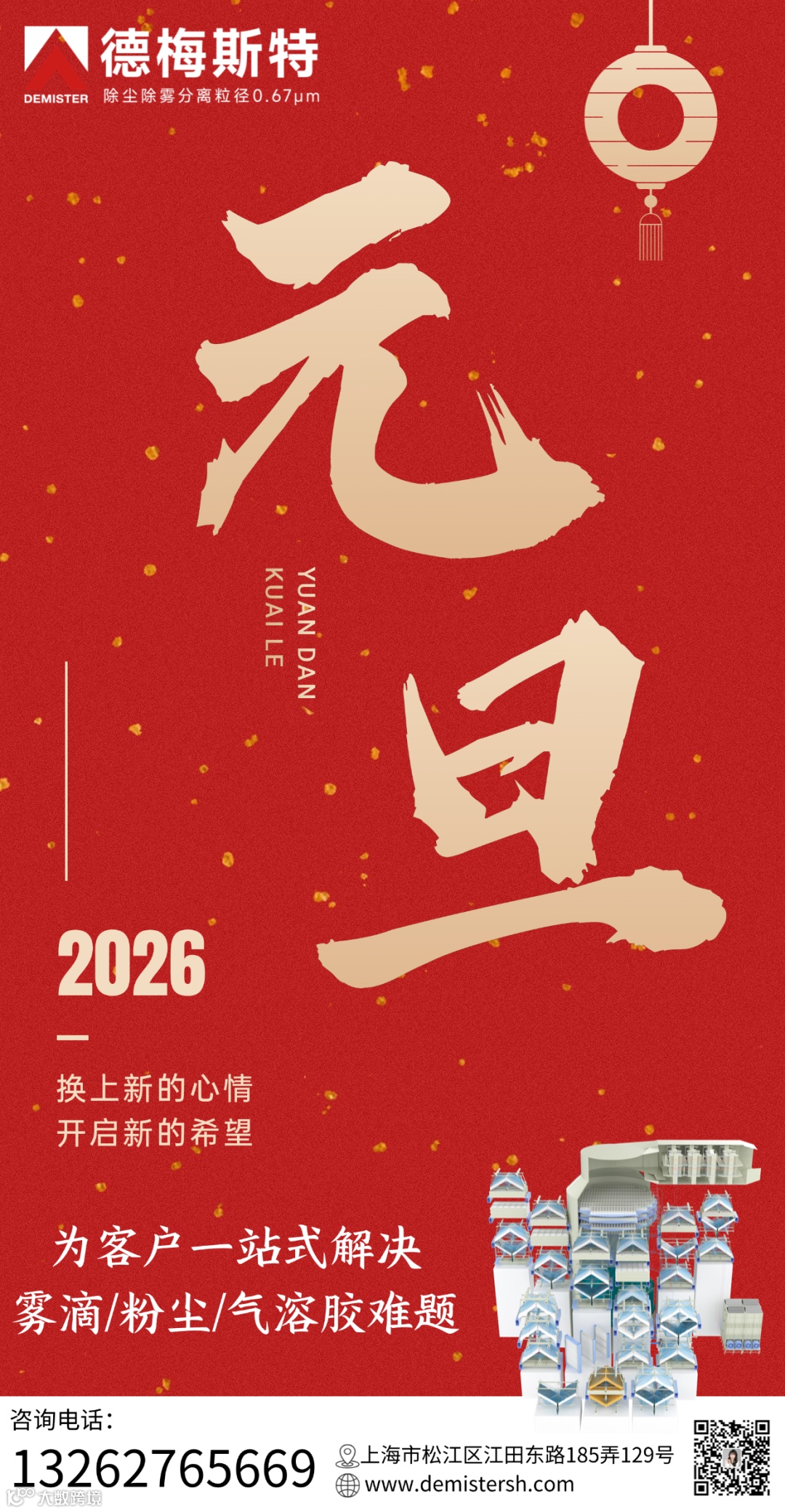 新元肇启,万象更新。德梅斯特环保,怀揣“成为分离技术综合解决方案全球领导品牌”的愿景,专注于为客户一站式解决雾滴/粉尘/气溶胶难题。我们自主研发CFS冷凝除尘除雾器、旋汇聚合除尘除雾器、高效除雾器,创新推出了废水低温蒸发解决方案、超净排放解决方案、水平衡治理解决方案,助力企业实现绿色转型。