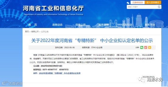 根据《河南省工业和信息化厅关于组织开展2022年度河南省“专精特新”中小企业认定工作的通知》(豫工信企业〔2022〕87号),经企业自愿申报,各省辖市、济源示范区工业和信息化主管部门初审推荐,省工业和信息化厅组织专家评审等程序,我公司凭借在企业创新发展方面的突出成就顺利入选,在已获得市级“专精特新”基础上,又获得2022年度省级“专精特新”企业荣誉称号。