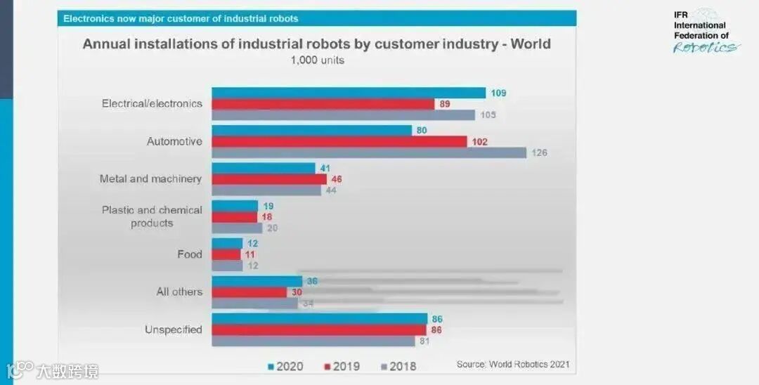国际机器人联合会主席米尔顿·格雷(MiltonGuerry)表示:“北美、亚洲和欧洲的经济体并没有同时经历新冠病毒的低点。中国制造业的订单接收和生产在2020年第二季度开始激增,北美经济在2020年下半年开始复苏,欧洲随后也开始复苏。”
