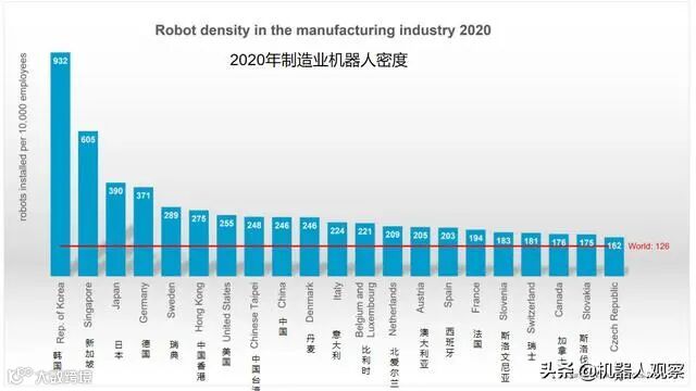 因此,在最近的5年,中国是全球机器人密度增长的主要驱动市场。目前中国大陆机器人密度,在全球各个国家和地区,位列第九。中国香港和中国台湾省机器人密度比大陆地区更高。