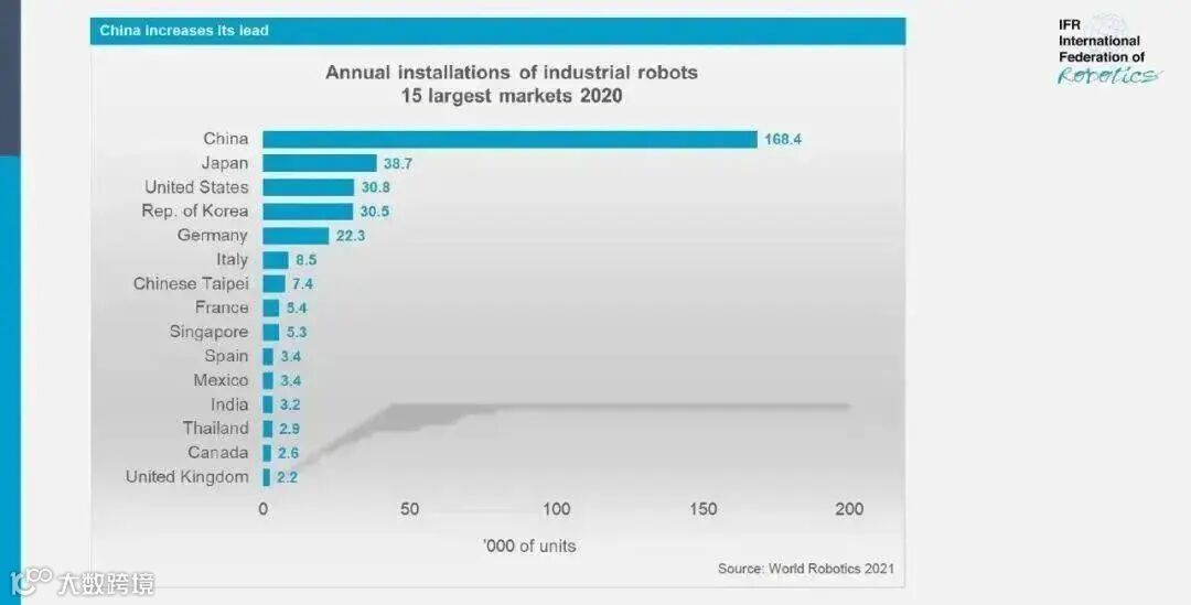 对北美市场的总体预期非常积极,目前正在强劲复苏,预计2021年工业机器人安装量将恢复到危机前的水平,将增长17%。危机后的繁荣将在2022年及以后以低于两位数的速度创造额外的增长。