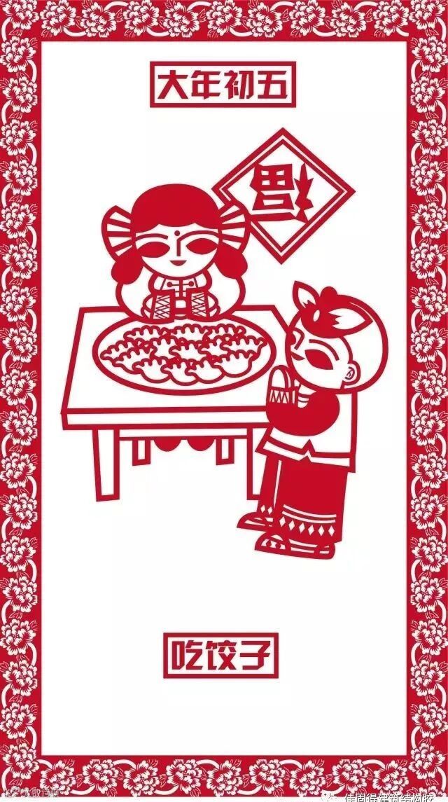 大年初五这天,民间通行的食俗是吃饺子,俗称“捏小人嘴”。因为包饺子时,要用手一下挨一下地沿着饺子边捏。据说,这样可以规避周围谗言。此外,妇女们在这天还要找出几件旧衣服来拆拆,谓之“拆小人”。据说,这样可以免霉运。