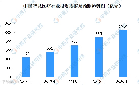 未来几年将是中国智慧医疗建设飞速发展的时期。在新医改方案的指导下,各地方政府将会加大当地智慧医疗建设方面的投入,将会有更多的医疗机构参与到信息化建设中,一些信息化建设较好的医疗机构也将致力于建设更为先进的医院管理系统,提升自身竞争力,给广大居民带来更好的医疗体验。更多的地方医疗机构将会建设“以病人为核心”的临床管理系统,医学影像传输系统的发展也将进一步展开,网络技术的持续发展为远程医疗系统的推广提供有力支持,区域卫生信息化建设也将得到推广。中国的智慧医疗建设行业有着广阔的发展空间和投资市场。2020年,我国智慧医疗建设行业规模预计将超1000亿元。