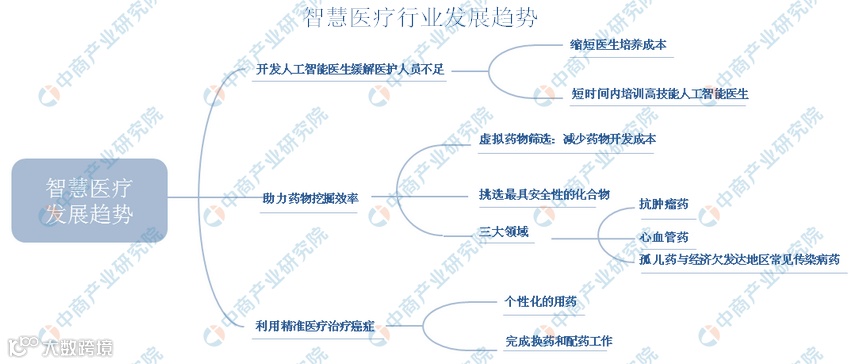 未来,智慧医疗将出现三大趋势:开发人工智能医生缓解医护人员不足,助力药物挖掘效率,利用精准医疗治疗癌症。
