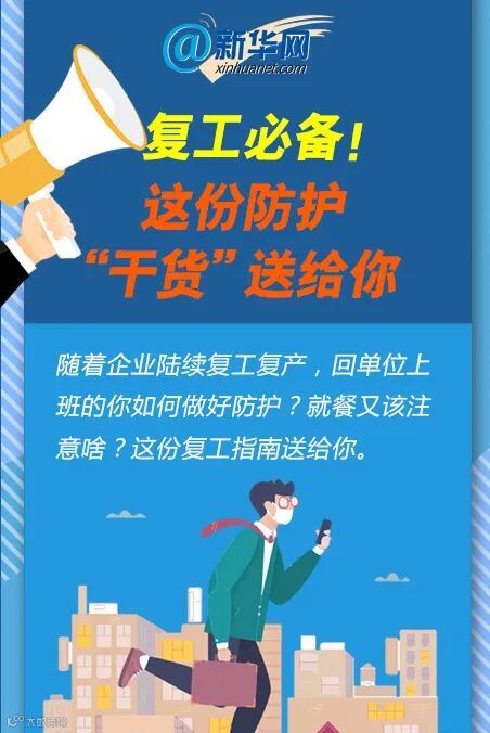 随着企业陆续复工复产,回单位上班的你如何做好防护?就餐又该注意啥?这份复工指南送给你。