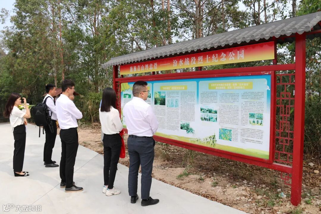 在2021年3月29日上午八点,各参与人员坐车来到汾水战役烈士陵园。在庄严肃穆的“汾水战役烈士纪念碑”前,我们举行了简短而又隆重的缅怀仪式,并邀请了驻揭团工委书记徐义通同志为大家讲述了汾水战争的历程及英雄事迹,听完故事后大家怀着无比崇敬的心情面向纪念碑深深地鞠了三个躬。