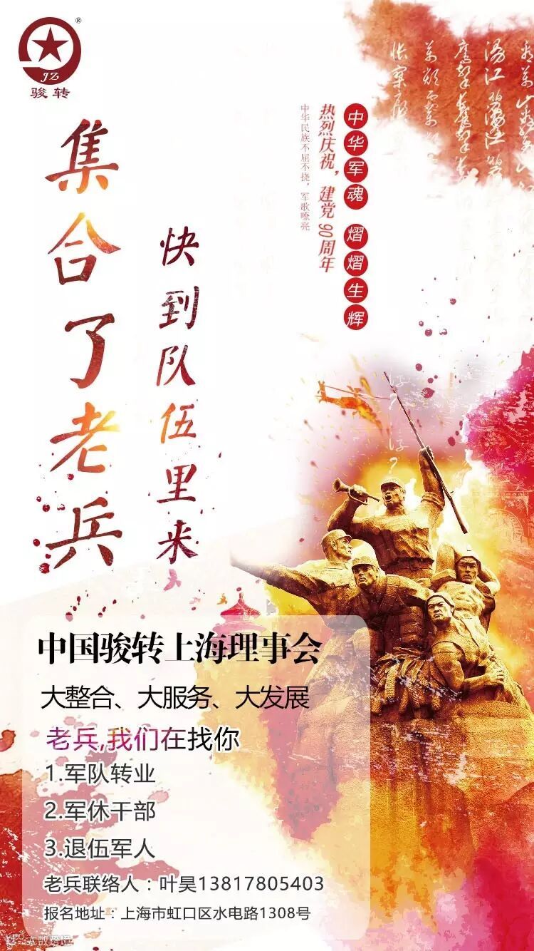2017年,注定是不平凡的一年,今年将迎来中国建军90周年大庆,作为与新中国共同成长起来的中国骏转理事会立志为中华名族的伟大复兴贡献一份力量,希望在举国欢庆之际,做一些造福天下之举。现面向全国民众诚挚招募理事会成员,凡退伍军人、军转人员、离休干部等具备军人背景者皆可参加,会费首年全免。