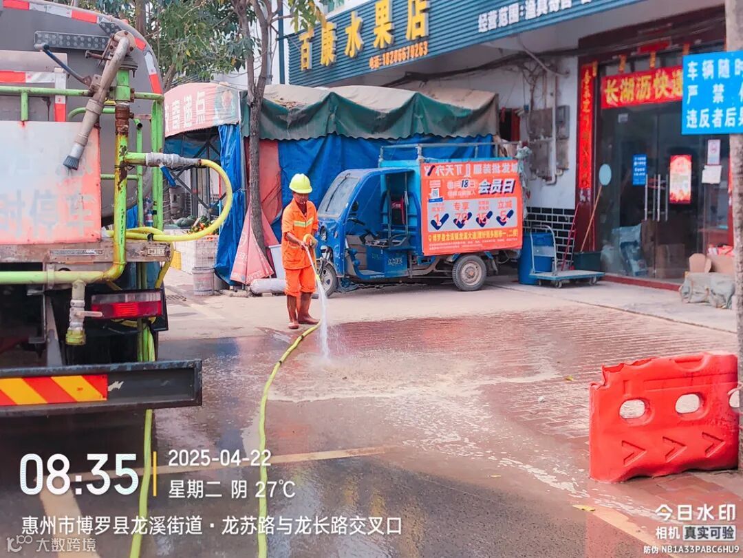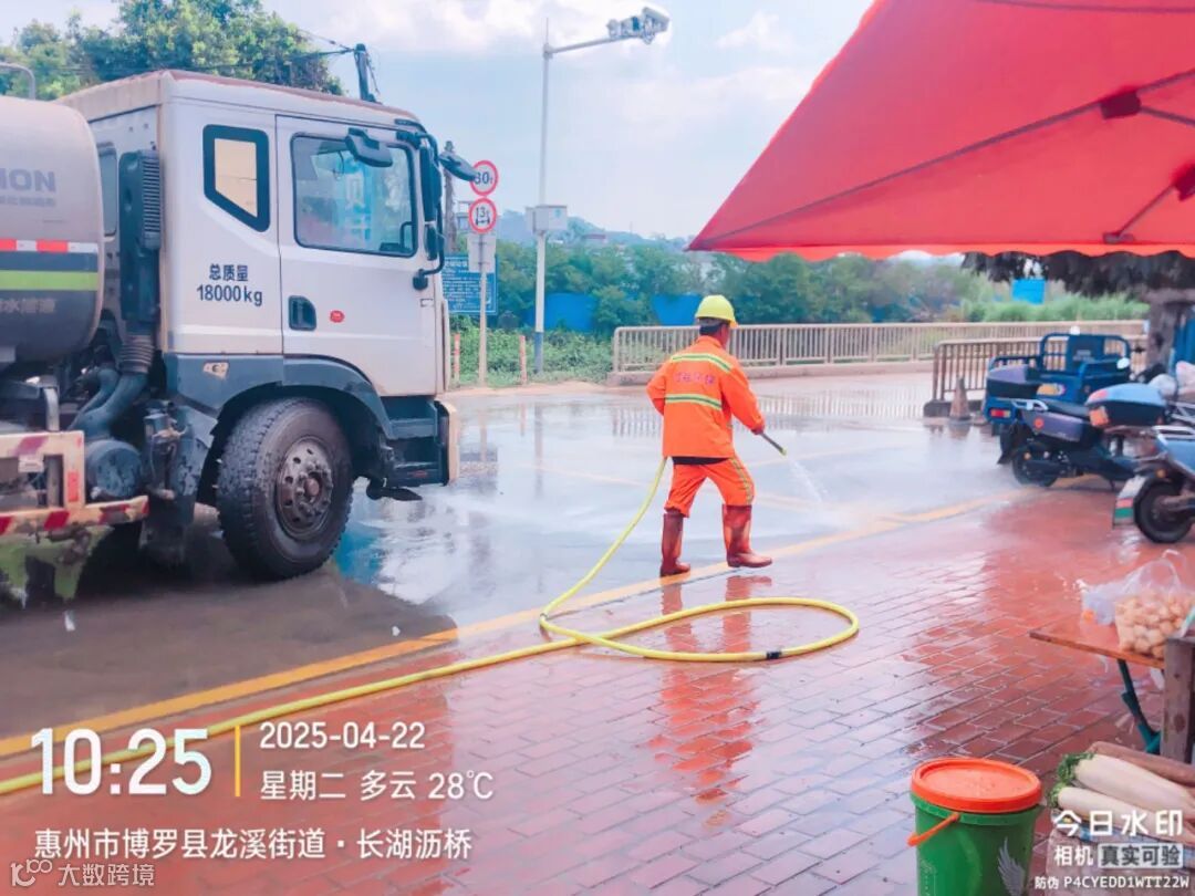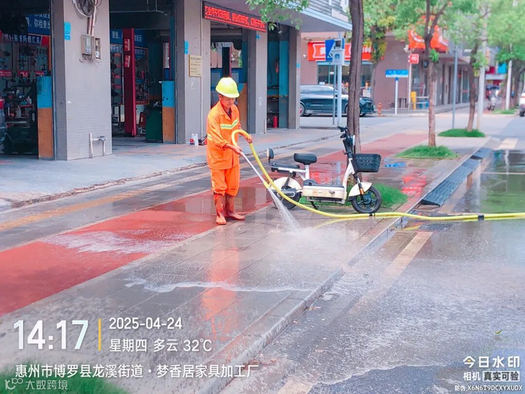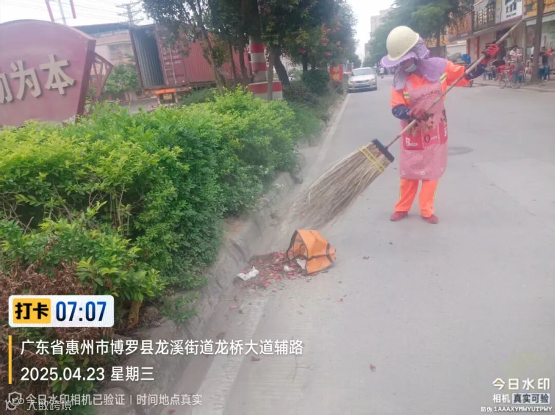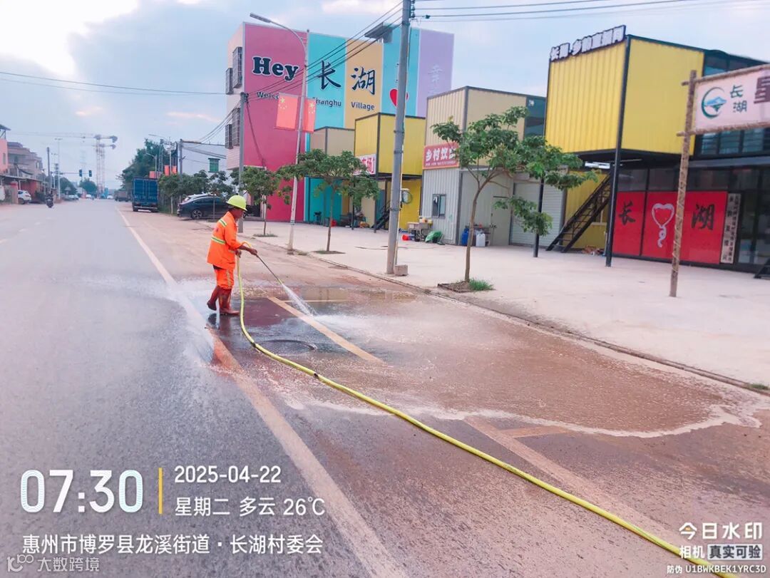 2、加大龙岗大道、龙苏路的洒水降尘频率;冲洗镇区栏杆。