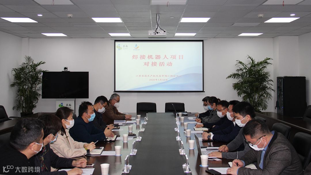 2020年3月18日,江苏省技术产权交易市场江阴分中心组织“机器人焊接项目对接活动”,邀请由哈工大(昆山)机器人有限公司副总经理张文光、昆山人工智能应用创新协会会长马维、苏州哈工易科机器人有限公司技术副总潘冬亮一行组成的焊接机器人团队,与当地传统企业对接,帮助企业解答机器人焊接应用难题、为有自动化改造需要的企业支招。