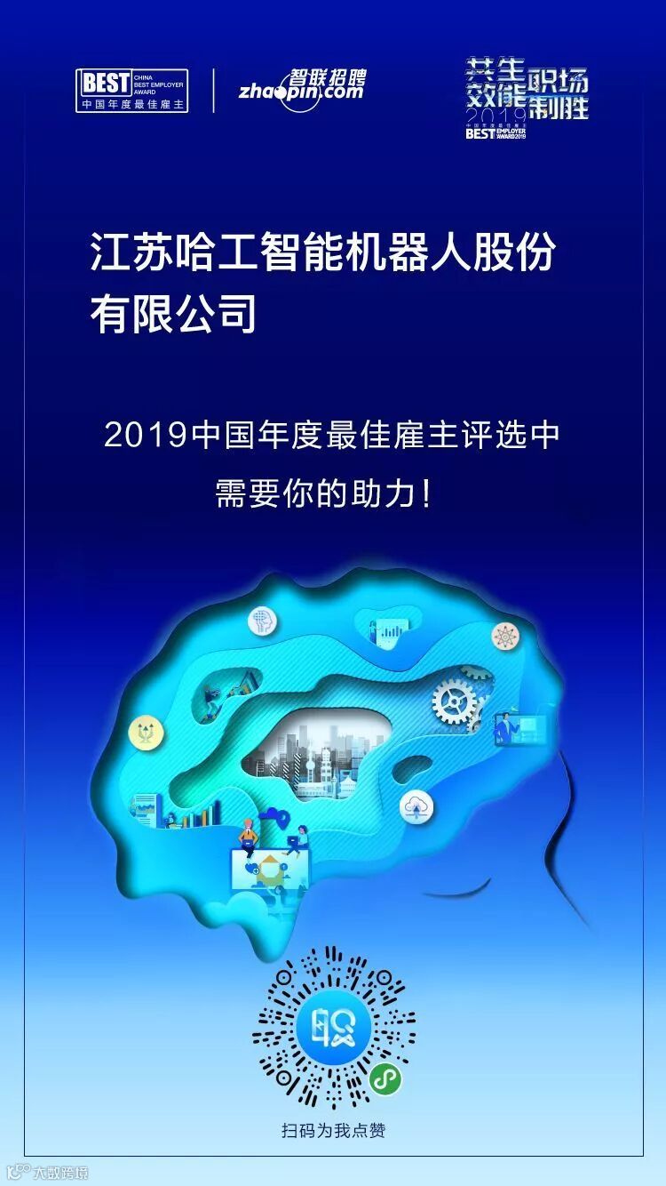 由智联招聘开启的2019中国年度最佳雇主活动现在正在评选阶段,9月16日前,扫描下图中的小程序二维码,使用微信或智联职Q登录智联招聘,点亮五星好评,写下你在哈工智能工作的感受并提交,为哈工智能评选2019中国年度最佳雇主助力!