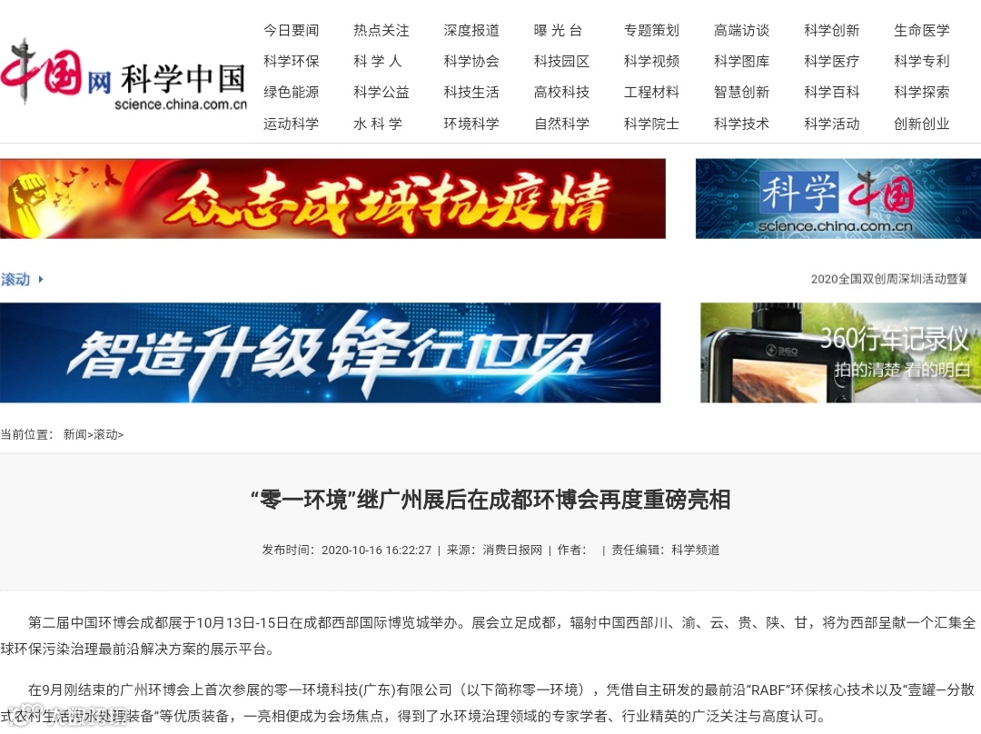 零一环境核心“RABF”技术作为一种实用性强、能耗低的污水生化处理技术,多次亮相环博会,前后分别参与了第二届中国环博会广州展、成都展。